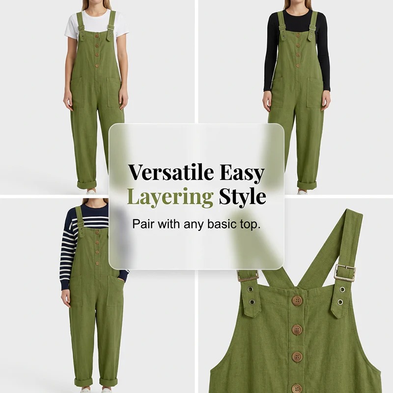 COMFORTABLE CASUAL OVERALLS FOR WOMEN FOR EVERY DAY - Discover the perfect combination of relaxed style and all-day comfort with these versatile button-down overalls, designed for your daily adventures.